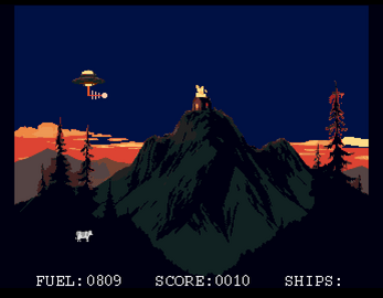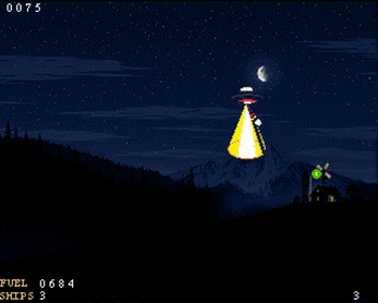 Either way, you'll need TWO joysticks - one for flying your spaceship and beaming up "energy", and one for controlling the space laser. They say the flying a helicopter is hard - why should flying a saucer be any easier?